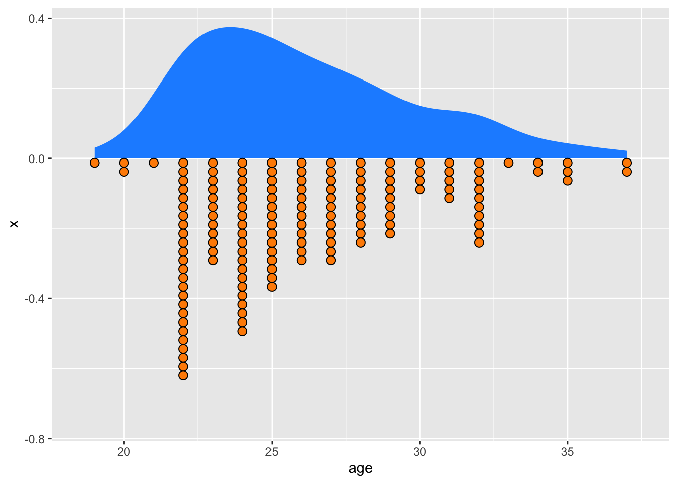 Like here’s a half violin (or just a density) with stacked dots: